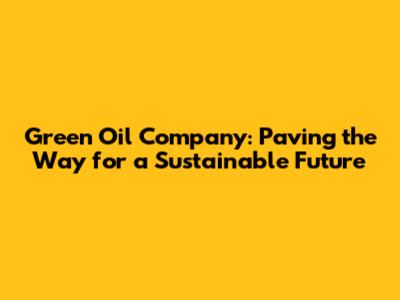 Green Oil Company: A Sustainable Future