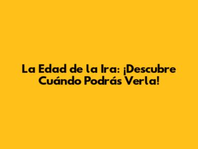 La Edad De La Ira: Fecha De Estreno Y Todo Lo Que Debes Saber