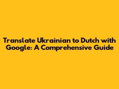 Translate Ukrainian To Dutch With Google: A Comprehensive Guide