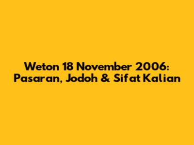 Weton 18 November 2006: Pasaran, Jodoh & Sifat